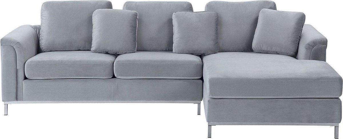 Beliani OSLO Corner Sofa (L) - Fluweel is gemaakt van Velvet. De kleur van Beliani OSLO Corner Sofa (L) - Fluweel betreft Grijs.