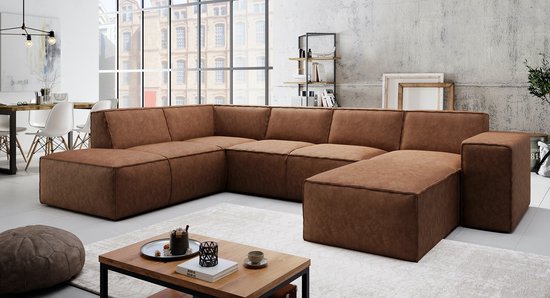 Meubella Hoekbank Monet XL Cognac Leer Rechts is gemaakt van Kunstleer. De kleur van Meubella Hoekbank Monet XL Cognac Leer Rechts betreft Bruin.